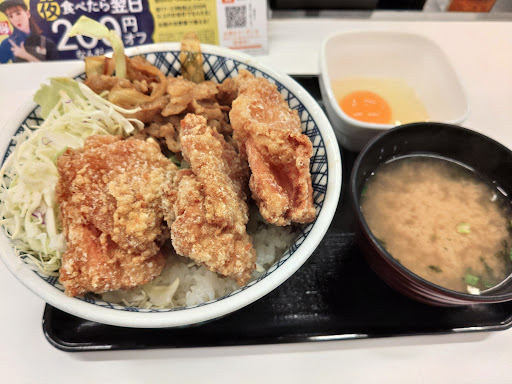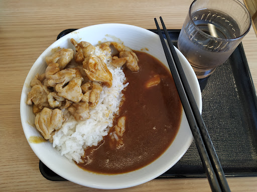 Cheap, quick, and valuable meal with a lot of chicken and beef. The taste is ok. No english...