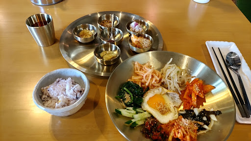 Read more2025年6月上旬に新しく出来た韓国料理のお店。のぼりが出ていて、気になったいたのでランチを食べました。内装はとてもきれいで、韓国感を感じる雰囲気です。手前にテーブル席が3つほどあり、1テーブル6人くらい座れるくらいゆったりとしています。奥は見えなかったのですが、まだ席があったかも。テラス席もあったので天気が良ければテラス席でも食べれるのかな。 いただいたのはビビンバ定食1500円です。他にも4つほどランチメニューがありました。手書きの黒板での案内だったので、日々変わる&同価格だと思います。ビビンバは写真の通りとても健康的で品数も多く、韓国文化特有の突き出し類(パンチャン)も充実してました。全部とても美味しかったです。当方、100回以上訪韓歴があり、韓国料理はそれなりに食して来ました。容器もしっかりと本場韓国の雰囲気を感じられるものを採用されています。 親切な韓国籍の女性が一人切り盛り?されているようで、駐車場の位置(店前のメインの通りを挟んだ東側の舗装された場所)から見送りまで丁寧に対応いただきました。 朝9時~夜10時まで営業と記載があり、モーニング(750円)もあるとのこと。伺った日は支払いは現金対応のみでしたが、7月5日からはクレジットカードも利用できるとのこと。色々なメニューを食べにまた行きたい...