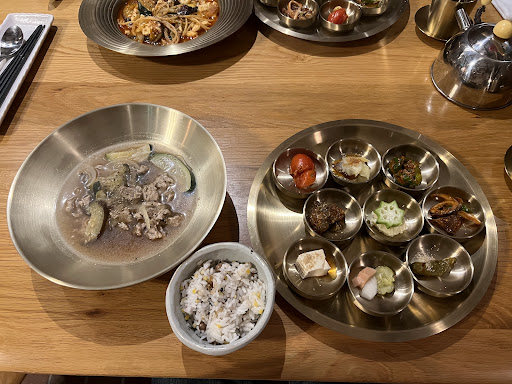 Read more大阪の山奥の田舎に韓国料理ができたと聞いて行ってみました。 駐車場で迷いましたが、止める場所を聞いていざ入店! 入った瞬間、田舎に合った趣がありとても良い良い感じでした‼︎ メニューも本格的なのがあり、「私は花」定食とスンデュブパスタ定食を注文! まず9個の小鉢が提供され、その後メインが来ました。 毎日収穫できた具材で提供されると説明があり、今回は豚のプルコギがメインとして出ました! あまり韓国料理を食べたことがなかったので、どんな感じなんだろうとがっついて食べてしまいました😅💦 すると豚のプルコギめちゃ辛くてすぐさま頭部、顔面へと汗が多量に出てきちゃいました💧 でも味はとても美味しくできており、嫌味のない後味でした‼︎ また、この米の価格上昇で大変な中、ご飯🍚のおかわり🆗というサービスに感動でした! 日本語も上手く話されており、とても親切に説明やお話をして頂きました! ママさん1人でされていましたが、料理の提供時間も程良く、悪い点は一つもありませんでした‼︎ 長くなりましたが、とても美味しかったので、メニュー...