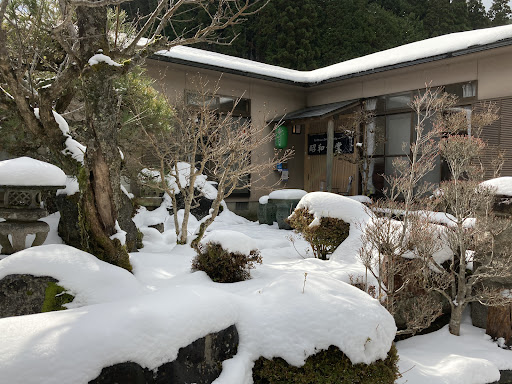 高野山から20分程車を走らせた野迫川沿いにあるお店です。食堂だけでなく民宿もされているようで、食事は母屋の中か、ガレージか倉庫を改築した建物ですることになります。ガレージのような建物の方は道路に面した前面が開放されていて、季節の良い時期は山間の空気を堪能することができ断然こちらの方がお勧めです。車は、店の横の空き地に止めれ、台数的にも問題なさそうでした。 ママさんが雪道で転んでしまい思うように動けず、それを補うために注文の仕方が若干ややこしかったのですが、お店のいろんな所に貼紙がされていて、それを読めば特に問題はないかと思います。