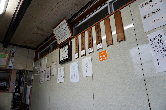 The라멘 로케인 아케보노 쇼쿠도는 도호쿠지역의 산간 오지에 위치해 있다 이곳을 가기위해 아오모리 - 아키타 간 특급열차 '쓰가루' 가 최고로 빠르게 갈 방법인데 하지만 그 배차간격도 적었다 후타쓰이역에 하차를 하니 2월의 동북이라 실감할정도로 눈이 가득하다 역에서 부터 눈길을 조심하며 걸어가니 5분도 채 안되는거리 근처에서 식당을 발견한다 길쭉하게 2층까지 올라간 건물이다 로케에 나오는 영상과 동일한 식당이 영업중이다 휴무가 아닌게 참 다행이다 두번다시 오기 힘든지역이라 좀 긴장했던터라 안도의 감정과 기쁨의 감정이 교차한다 식당내부로 진입을 한다 영상에 나온것처럼 특이한 구조의 식당이다 내부엔 다찌 9석이 전부다 의자간격은 좁은편이고 다찌길이는 30센치정도로 넓지않다 내부는 11자 형광등이 내부를 밝혀주며 실내에선 TV가 흘러나온다 내부는 겨울임에도 꽤 습기가 가득했다 계산은 선불로 지불하고 할머님께서 아주 친절하게 응대해주셨다 다찌아래에 공간이 꽤 넓어서 입고온 패딩을 구겨 넣었다 영상에 나온 메뉴판이 그대로고 금액은 십여년 전보다 백엔이 올랐다 여전히 너무 착한가격이라 놀랍다 영상에서 나온 나무가 여전히 존재한 식당 지역 홍보물과 역 시간표 달력이 푸근하다 달력을 보면 시골집에 걸려있을법한 그런 달력이 너무 친근하지 아니한가? 오더한 중화소바의 바쥬얼이 거의 그대로다 심지어 라멘기조차 같은것이다!! 짙은 갈색의 말고기 차슈가 눈에 확들어온다 그밖에는 푸근한 토핑들에 라이트해 보이는 스프가 정겹다 스프는 올드풍의 슴슴한 느낌으로 처음먹어보는 탕국같은 미묘함을 느끼는 스프인데 쇼유베이스가 느껴진다 스프의 온도는 미지근하고 염도는 보통에 만족하는 맛있는 스프다 확실히 지금까지먹어본 라멘들과는 상당히 틀린 스프를 제공한다 건멸치에 고기육수조합이라니 너무 심플한데 나에겐 너무 생소한 맛이였다 말고기의 맛이 아마 내가 처음먹어봐서 그런가보다 볼륨감에서 보는 것처럼 면은 치지레 소면이다 40센치 길이의 웨이브소면은 온도가 미지근하며 면의 익힘은 중간정도로 약간 면의 심기가 느껴지는 맛있는 치지레멘이다 스프를 약간 머금고 있으며 스프와의 궁합은 무난했다 처음먹어보는 신기한 말고기 차슈인데 씹는동안 느껴지는 내 기억속의 느낌은 미국인 친구가 직접 사냥해서 잡은 야크절키같은 느낌이였다 육포에서 느낄법한 신비로운 맛이 말고기같을 줄이야 상상도 못했다 염도는 보통에 차슈의 만족도는 아주 맛있다 소고기와는 좀 틀린 차슈는 스프와 함께먹으면 향이 더 풍부해지며 고기향을 더 잘 느낄 수 있던 신기한 경험이였다 정말 이런 신기한 라멘이 많이 존재하지 않고 먼 동북지역의 시골에 위치해 있다니... 이곳까지 올 라오타분이 과연 존재하실까?? 그분도 나처럼 맛있게 드셔주실까?? The라멘 오타라면 꼭한번 여유있게 이곳으로 여행을 와서 즐겨주길 바란다!! 후추를 가미하니 전체적으로 라멘의 바란스를 확 올려준다!! 아니 처음부터 그냥 넣어먹을정도로 맛있게 변신한다 얇은 멘마는 특유의 향이 아주 미묘하게 존재하며 염도는 보통에 만족도는 큰 감흥은 없는 조연정도다 영상로케에 나오는 여사장님의 어머니가 창업해 지금은 60년이 넘는 오래된 식당으로 후타쓰이의 명물이 된 식당이다 일본 예능방송 '켄민쇼' 에서도 이곳을 소개해 일본사람들도 방송을 보고 방문을 하는듯 보인다 The라멘 전 일본 로케중 내가 방문한 곳이 거의 70%를 방문했는데 앞으로 얼마나 영상로케의 식당들이 견딜 수 있을지 모르겠다 코로나의 영향으로 영업이 힘들지 않길 바란다... 약간은 걱정했던 말고기라멘!! 우려와는 다르게 너무 맛있게 먹었다!!
