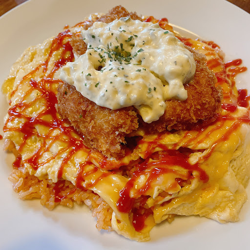 ケチャップで味付けしたバターライスの上に、半熟の薄焼き卵と白身魚のフライを乗せ、タルタルソースをかけたものが一般的だが、お店によってはエビフライを乗せているところもあるらしい。ターブルはエビフライを採用した模様。