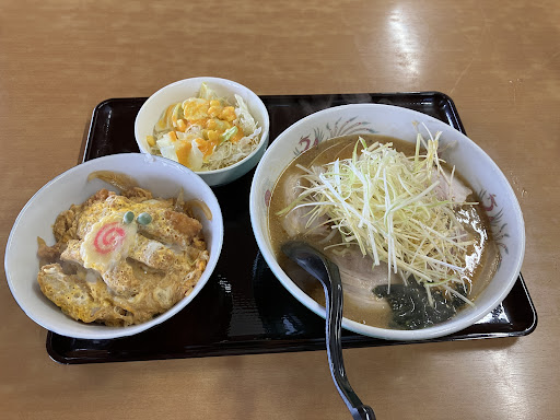 Read more口コミのネギみそらーめんに惹かれて来店。店は歴史を感じるが、中は綺麗に清掃されている。気持ち良い接客。一番人気のネギみそらーめんにカツ丼セットを注文。私が最初の客で開店して時間が経っていないからか、注文から着丼までまさかの20分超え。その後のお客さんは10分程度。ネギみそラーメンは普通のネギにサッパリ系の味噌ラーメン。ラーショ系を期待していたけど有り。カツ丼も普通のカツ丼。大きくハズレない、見方を変えると毎日行っても飽きない味。セットは軒並み1,100円超えるので、毎日は無理だが、ボリュー...
