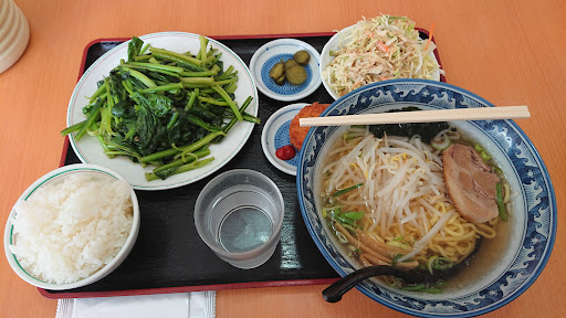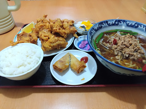 沼田高校と国道120号線を挟んで反対側に有った台湾風食堂。ランチ☀️🍴タイムに行った。暑かったので「冷やし中華」を頼もうとしたらセットメニューにランチセットがあった。「麺+飯セット」に「冷やし中華」+「台湾風炒飯」=690円?・・・・。安い‼️でも各写真は美味しそうで量も有りそうだった。大手量販店の写真と同じで皿&碗が小さい写真で美味しそうに見せるそれと思って注文‼️お母さんらしき人がよく分からない中国語?で確認をしてきたので当方は指差し注文したけど反応がなかったので若い店員さんに再確認していたらカウンター越しに「中国語で注文入ってる!」と言っていた。日本語がわかるなら注文時も「はい!」て言って欲しかった‼️出て来た「麺+飯セット」は想像を遥かに上回る量(普通に頼む単品?飯は大盛)素晴らしいコストパフォーマンス台湾風炒飯は旨かった‼️今日の日替ランチセット(青菜炒め+塩ラーメン)もコストパフ...