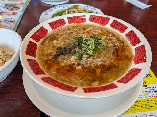 Read more中華料理系のファミレス、1階駐車場、2階店舗の形態。 駐車場は20台程度、少ないように感じるが、何故か混み合ってるイメージ無し。 4人掛けテーブルが30席程度、田舎ではよくある広さかなと思う。