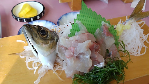 標準的な食事処。 メニューには写真などはなく、外国人には使いにくそう。 アジの造りは鮮度抜群。おいしいです。 サザエのつぼ焼きは...