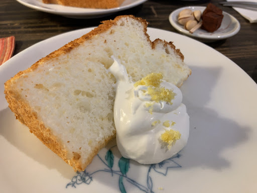 「ブレンド」「インディアンミルクティ」共に価格相応。 「シフォンケーキ」も、お供のホイップが甘過ぎず好みの味わいで、強いて言えばもう少し耳が柔らかくても良いかなと感じたくらい。