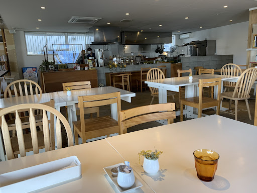Read more7年前にオープンし、3年前に店舗を移転したそう。店前に12台の駐車場あり。 白い外壁に黄色いマークがよく映えます。店内は天井が開けられていて広い印象が見受けられます。広々とした店内。いくつかあるテーブル席と2、3人から少し多めの人数でも行きたいお店ですね。お昼時ともありお母様方の笑い声が店内には響いていた。個性ある椅子達は広い店内によく馴染んでいる。壁には本が至るところにかけられていて、英語の写真集から料理本、絵本やエッセイなど数広くありどれも興味深く選ぶのに迷ってしまう。メニューはパンケーキ、カレー、ご飯ものと種類が豊富。 キーマカレーを注文。少し辛めだが黄身のまろやかさがマイルドでおいしい。水だしコーヒーは味わい深く濃厚。 連れはさつまいも&キャラメルのパンケーキを注文した。生地にさつまいもと胡桃が入っていてふわふわ食感と少し固い食感との融合が面白かった。 なんとも過ごしやすく気がつくと長居してしまう...