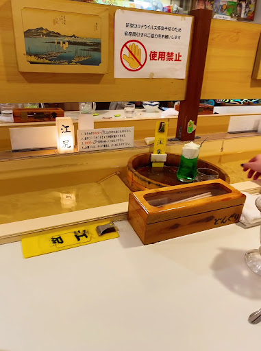 どんぶらこっこ〜♪と、注文したメニューが桶で客席に運ばれてきます。 ユニークでおもしろい仕掛けですが、もう少しサービスや提供スピードがなんとかならないものでしょうか。