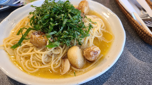 ホントに、ここはいい喫茶店ですね! まず、お冷なんですが、レモン味のお水。サッパリとして、飽きがこないです。こういうお水、欲しかった.. マスターさんが、すごくいい方ですね〜 1人で来たのですが、コーヒー飲んでる時に、マスターさんが、「口が寂しいでしょ?」と言い、小皿に入ったお菓子を何個かサービスしてくれました。正直言って、こんなサービスされたの初めてです。 その代わり、パスタが来るのが少々遅いですが、その間、コーヒーを積極的におかわりしてくれて、凄く嬉しかったです。 そして、やって来たぞ!食べたかった、ニンニクのパスタ! 熱々で美味しい..!!ニンニクが丸ごと入ってるのですが、ニンニクの臭さが無く、まるでジャガイモを食べてるような感じ。 ニンニクの味はするんです。ですが、きつく感じないんです。全体的に、お酢の風味ですが、嫌ではないんです!!! また、唐辛子が入ってるので、ピリ辛でイイ!大葉もドッサリ盛ってあり、すごいですよ! こんなパスタ食べたの初めてです。これ、癖になりますよ! そして、パスタ食べ終わったあと、しばらくしたら、またマスターさんが、コーヒーのおかわりと、お菓子をサービスしてくれましたww すっかり、明治茶館の虜になりました。 今度は母や、友人を連れて行きたいです! ありがとう、マスターさん。あ...
