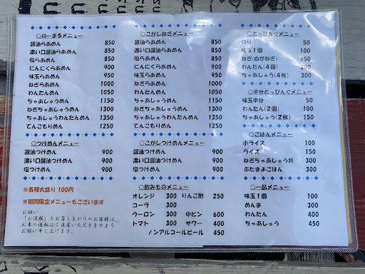 オーダーは、 こがしねぎの、濃い口醤油らあめん てんこもりめん(いわゆる全部のせ)1200えん 大盛り 100えん