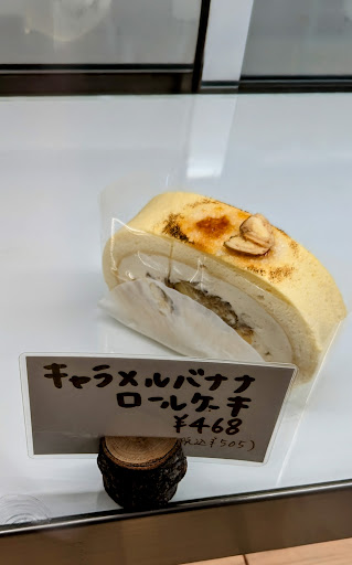 お目当てのNYロールととろける生メロンパンケーキは無事購入、レジのガラスケース内にバナナロールを見つけて、こちらも頂きました。