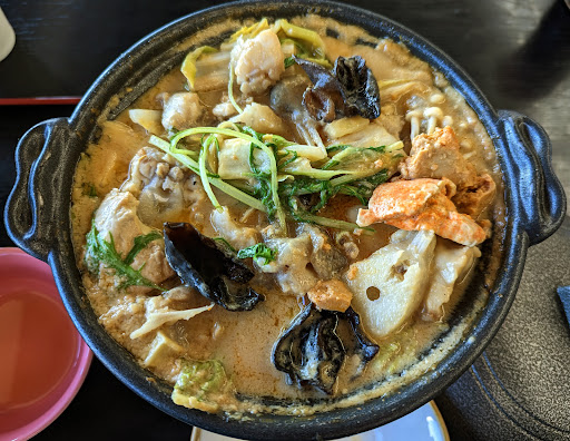 Read more2024年11月 冬の美味しいものといえば鍋ということであんこう鍋を食べに来た。 中々一人用の鍋ってメニューに設定されてるとこないんだよね。 固形燃料のミニ鍋ならよく見るんだけどそうじゃなくて一人で土鍋であんこう鍋食べたいんだよって探してたらここにあったよ!って一緒に探してた友人が探し当ててくれた。 やったぜ、明日行ってくるわ。ということて翌日1人で電車に乗って大洗に行く。今日は友人はお仕事なのですよ。 駅から2キロ歩くのね。まあ、お腹がすく分あんこう鍋がおいしくなると思えばええのさ。 まあ2キロ歩いた結果暑くなったので温泉に入るのは止めた。帰りも歩いたら絶対汗だくになる。 でたどり着いて入ったら温泉の受付みたいだったので、ご飯だけって良いですか?と聞いたらいいよ〜と番号札渡された。これが伝票の代わりになるらしい。 好きなとこ座っていいよ〜とのことだったので、海の見える座敷に座る。 あんこう鍋と、どぶ汁何が違うのか?オススメはどっちなんやろ?と思ったので聞いてみる。 どぶ汁は出汁が濃厚で、弱火でないと焦がしてしまうと。頼む人の大半が焦がしてしまうと店員さんが悲しそうに語ってくれました。 なので普通のあんこう鍋にする。ご飯などは頼まない多分頼んでもお腹いっぱいで食べられないだろうし。 あと、追加で生牡蠣頼んだ。 生牡蠣めちゃくちゃ美味しかったです。レモン絞って、紅葉おろしは、たっぷり載ってたのですが一旦避けてお箸の先端で摘めるちょっとだけを牡蠣に載せる。で、牡蠣をポン酢に浸けるのではなく、ポン酢を牡蠣にちょい掛けしていただく。牡蠣の味広がる〜あまり磯臭くないの不思議。美味しかった、当たらなくて良かった。いよいよメイン登場ですよ。 あんこう鍋。作り方分からんのでザックリ教えてもらう。 最初に出汁に味噌を溶かし、あんこうを全て投入する。野菜は半分ぐらいにしないと吹きこぼれるとのこと。 良しやってみる。味噌がなかなか溶けないんだが。まあ、何とか溶けたのであんこう投入。野菜は1/3ぐらいにしとこう。 蓋をして吹いてくるのを待つ。 グツグツしてきて穴から吹いて来たのでちょっと火を弱くして蓋開ける。 おおぅ、美味しそうな匂いしてますよ。 1つ食べてみる。今食べたトコは、トロトロな食感でした。魚の身って感じのトコもあるけど、どっちかというとコリコリ食感とかトロトロ食感の牛テールとか豚の軟骨(パイカ)にも近いような食感。生臭さは殆ど無くて美味しい。少し食べたら野菜を追加。味濃いな、水増すかどうしようか悩む。野菜を全部入れた時点で火を切ることにした。後は土鍋の熱だけで保温しながら食べる。 暑い、だがうまい。これ温泉に入ってたら汗だくやったやろな… お腹いっぱいなんだけど暑いしどうしよ? コーラもう一杯飲むか、コーラフロートにするか?どうしようかなとメニュー見ていたらかき氷、夏季限定とは書いてないので店員さんに聞いてみる。 かき氷ありますよとのこと、レモンを注文。 あんこう鍋食べて熱々なのでかき氷がまたおいしいのですが、固まっててスプーンでつつくとボロボロと溢れるの何とかならんのですかね? 海、広いねぇ、神戸の海って瀬戸内海なので対岸が見えてるんだよね。こんなふうに水平線なんて見えないので新鮮でした。 あと、ここのメニューめっちゃ多い、全メニュー制覇すんの無理やろな。っていうぐらいメニューあって、今回みたいにこれって決めてないと悩みそう。どれ...
