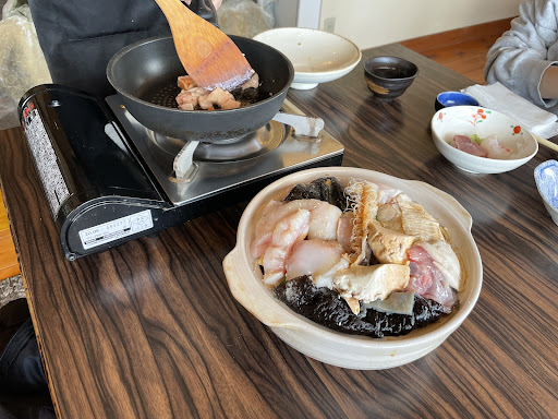 お刺身‥平目とまぐろ。どちらも新鮮! 唐揚げ‥ふわっふわ!美味しい! とも酢‥地元の人はあんこう鍋よりこっちをよく食べるっていうのを見て気になってたやつ。さっぱりして引き締まったあんこうに酢味噌がとても合ってる。あんきも最高。 どぶ汁‥いろんな部位が入って食感が楽しい。お店の方が最初に肝を炒ってくれる。あん肝おいしい。野菜もおいしい。締めのおじや最高。お腹いっぱいだったのに美味しすぎて手が止まらなかった。 締めのアイス‥味が濃いのを食べてたからゆずアイスでさっぱり。美味い