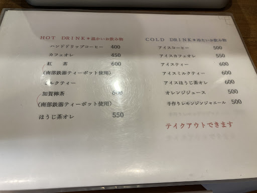 紅茶やコーヒーだけでなくほうじ茶もあるのも嬉しいですね。鉄瓶で持ってきてくれるのも個性的でおもしろい。また、庭のながめが素晴らしく雰囲気は抜群です。 クッキーやフィナンシェなどの焼き菓子の販売もあり、こちらはお土産にもおすすめ。特にレモンケーキは本当にレモンの香りが高く、レモン菓子好き...