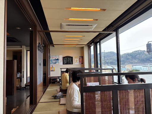 Read more宮津へ行く途中に立ち寄りました。たまたま開店の11:30分より早く到着し駐車場にはいってみると、既に先客が車中で待たれてました。車中で待ってるとほどなく女将さんが出てこられ開店です。愛想が良く元気な女将さんに席に通され、海鮮丼と刺身定食、それに地元の牡蠣をオーダー。お魚は鮮度の良さを感じるコリコリ感満載です。美味しいです。 牡蠣は調理してから出てくるものと思ってましたが、ガスコンロと蒸し器代わりの空き缶を女将さんがもってこられ、目の前で蒸してくださいます。蒸しあがった牡蠣はトロントロンのフワフワで臭みもなくとても美味しいです! 開店間もないのに次々とお客さんが来られます。それも地元の常連さんが結構多い様に女将さんとのお喋りから感じます。入口にお酒も結構置いてあり、カウンターもあるので、夜は居酒屋的な営業もされてるのかなと想像します。 女将さんの接客やお喋り、お魚や牡蠣などの旬の味、どちらもとてもいいです。しいてマイナスポイントを言えばコスパが悪い事かな?質はともかく量が少ないと感じます。妻も楽に海鮮丼が食べられたとの事で、当方もちょっと物足りません。肝心のお刺身ももう少し大ぶりで厚く切って頂いたらもっと美味しいのになあーと。お店の前の海岸には人魚の像があります。なぜここに人魚?女将さんから理由を聞きました。皆さんも行って聞いてみて下さい。しかし良いランチタイムになって良かったです。また近くに来たら再訪したいと思います。