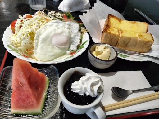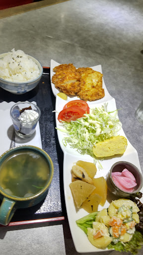 お昼過ぎに来店。元気な奥様が対応。ハンバーグ定食と家内はチキンカツ定食を注文。確かメニューの写真では、丸いハンバーグだったけど、四角いはんぺんのようなハンバーグが二枚。サイドのサラダは充実。お漬け物のかぶ?も美味しかった。スープにコーヒーゼリーも付いて750円はコスパ良すぎ。家内のチキンカツも2枚あって他のは同じだったけど満足してました。ただ、食後にコーヒーを頼んだのですが、大抵の喫茶店では食後のコーヒーは100円引きとかですがここは普通料金なのがマイナス。 常連客が多く、カウンターに座ったのですが、食後のコーヒーを後ろのテーブルに…と言われました。カウンター、嫌だったのかなぁ?1台だけある麻雀ゲームテーブルにしたかったのですが足をぶつけるとか何だかんだで軽く拒否られたので諦めました。何かあるんかなぁ? とは言えコスパは最強クラスです...