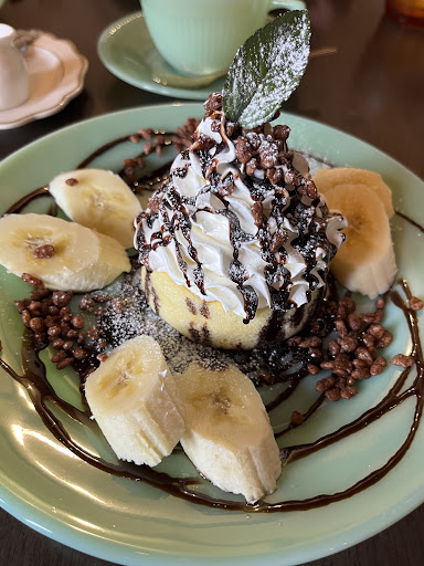 今回はランチを済ませていたので、チョコバナナパンケーキを注文。 まず、その高さに驚きます。 でも、皆さん一人でペロリと食べれるようで、私も美味しく食べれました。