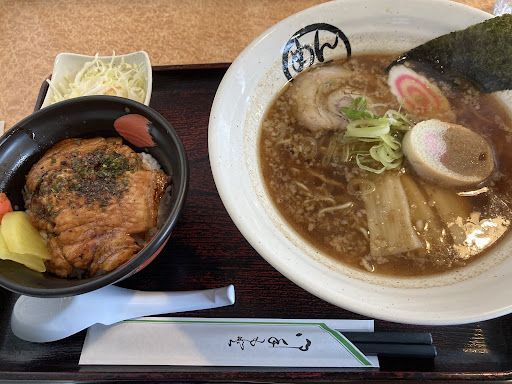 ランチのみの営業で結構混みますが、店内はわりと広く、お客さんの回転も早いので、ビジネスマンがお昼休みに食べに行ける食堂です。 醤油ラーメンとミニ豚丼のセットをいただきましたが、ラーメンの麺はシコシコで美味しいのですが、煮干し系スープが好みじゃないので、個人的には評価は低め。でも、出汁がしっかり効いていて魚粉も大量に使ったスープは、好みの合う人なら美味しいんだと思いますね···多分。 豚丼の方は、肉が薄いのに網焼きなので、ジューシーさに欠け、タレも肉に馴染んでいないので、イマイチでした。 でもこのセットで¥1,020なら、コスパ的には良...