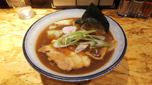 にんにく醤油 見た目からして二郎をインスパイアしてるんだろうが、カエシとスープがあまりにも違いすぎてインスパイアとも言い難いです ラーメンとしては及第点かもしれないですが、二郎系としては赤点です もう少し二郎系特有の添加物たっぷりの中毒性のある味に近づけて欲しい