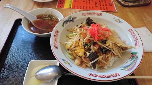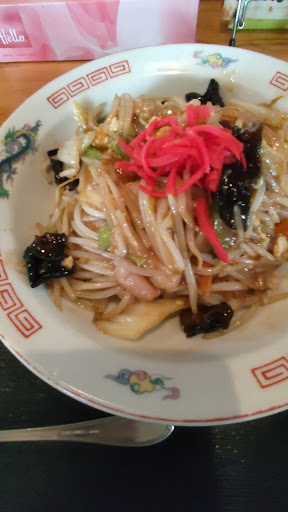 名物の中華ちらしを頂きました。 餡がないちょっとだけオイスターソースのかな?甘みも感じるある中華丼のような感じですが、美味しいです。かなり好きですね。 もやしたっぷり、キャベツや玉ねぎなどのにんじんもあって、エビ、キクラゲ、豚などもやしを除けばほぼ中華丼の具ですが、クセになる位美味しかった。 また、紅しょうがが絶妙なアクセントを醸し出してます。 ご当地グルメとしてもっと流行ってもいいいのになぁ、と思いま...