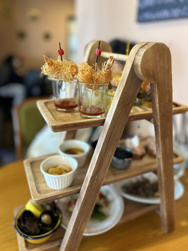 運ばれてきた料理のタワーとプレートの見た目が圧巻、一品一品が丁寧に作られている感じ、色々なものを少しづつ食べられて楽しい、味はシッカリめで、お酒に合いそう。