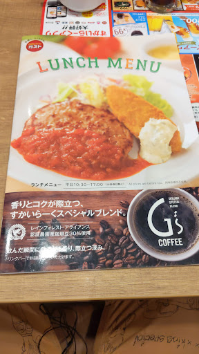 Read more土曜日の14時半頃来店。席も疎らに空いているけどスタッフが少ないのかちょっと案内まで待たされる感じです。メニューも豊富で価格帯もちょい安めといった感じでしょうか。ドリンクバーでセルフですが通路があまり広くないので席が遠いと取らないですね。でも、水もセルフなのでどのみちいかなきゃいけないんですけど。商品の提供速度は早くてストレスはありません。本日のスープもおかわり自由とありますが、1種類をわざわざ遠いドリンクバーのところまでいくのは面倒ですね。味は普通に美味しいです。席にコンセントがあるのでスマホを充電している人が普通にいたのでその辺は寛容なのかなって思いました。スタッフさんがあまりうろちょろしていないので落ち着いて食べられます。対応自体は愛想は全くありませんが(人による)まあ、最低限の対応はしてくれるので気にはなりません。メニュー表はちょっと見づらいのが困るかもしれません。ライスだけをつけることはできないのかセットの表記は無駄にたくさんついています。セットはあのドリンクバーなのでいらないからなぁ。支払いはカードや電子...
