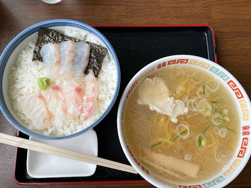 Read more海鮮丼が美味しいと、色々な方の情報があったので初めて行きました。残念ながら、現在は、食材の調達の都合でメニューからなくなっていました。⤵️鯛丼と鯛出汁ラーメンのセットは1000円でありますとお店の方に言われましたが、評判の塩ラーメンも楽しみにしてたので、今回は普通の塩ラーメンにしました。まかない塩ラーメンも100円高い750円であります。スープは比較的自分好みでしたが、麺が好きではないタイプの黄色透明かかったかんすい高目タイプといいますか、ちょっと硬く、ゴムっぽい麺で残念でした。このスープなら旭川ラーメンのタイプの麺なら、凄く好みのラーメンになる気がします。具は、チャーシューといいよりは、薄いバラ肉をさっと湯がいたようなタイプが一枚と小さな麩が一つ。メンマ少々のシンプルな感じでした。650円と考えると妥当と言えば妥当かな。1000円ね鯛丼セットだと、丼もミニで、ラーメンもミニなので、量的にも足りない感じがしたと思うので頼まなくて自分は、良かったです。色んな方のブログの写真でその日仕入れた魚の海鮮丼が凄く美味しそうに見えたので、それを食べて見たかったですか、ラーメンが好みでなかったのでちょっと残念でした。いつも通ると、クルマはびっちりなので、人気店だと思います。接客も普通で悪い感じはしませんでした。感染対策は、入り口に消毒液はありますが、カウンターやテーブル席のアクリル板や...