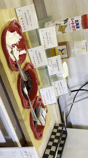 素材を堪能するものとしては牛乳飲み比べや数種類蒸してあるじゃがいもを食べ比べ、十勝納豆の老舗ブランドを堪能なんてことも可能だ。 パンケーキ焼き機械もあって、いゃ〜うれしい悲鳴。観察しているとインバウンド勢は意外にもイクラとかイカの刺身は丼にはせず、サンプリングサイズでちょびっと食べてるし、パンケーキを実際に焼く人は少ない。何しろ玄関から細長い構造で、みな最初からさらに盛り付けてると、終盤のイクラあたりにはお腹いっぱいになってるのかも。一方で60代くらいの日本人夫婦はさすがに年の功、そして健啖家で目玉焼きは4つ、納豆は1人あたり2パック、魚介丼や豚丼も作り平らげていく。ご飯のおかわり回数5回までは数えたが、特に旦那は奥さんの食べきれない分を攫っていくからすごい。