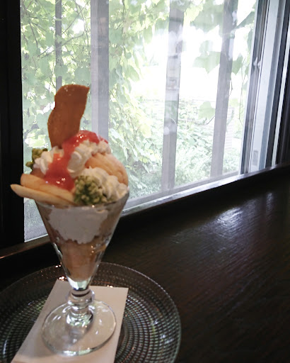 Read more看板なかったら普通のお家ですね。家の前に三台ほど駐車スペースありますが狭いです。中に入るとお香の香りがしました。とても雰囲気ある店内です。季節限定の贅沢桃のパルフェ1500円食べました。まるっと桃入ってるのが嬉しいです。桃以外は手作りみたいですょ。美味しかったんですが、個人的にはパフェなので、桃が冷たかったら最高だったのにと思いました。あとケーキも気になりました。 2019年8月 桃のパルフェ食べました。いろいろ工夫されててヒンヤリスイーツになってました。最高です!帯広ではここのパルフェが一番好きです。自家製ジンジャーエールもほんと美味しかったです。店主も優しい方ですょ(≧...