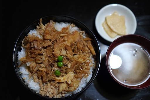 成人するまでに過ごした十勝にいたころから お名前だけは知っていた「鶏の伊藤」さんに初来訪です お店の前はよく通っていたのに存在に全く気づきませんでした (ますやさんの麦音さんから帯広の駅方面に戻る道沿いに お店ありますがお店そのものはちょっと奥まっています) 14時近くの到着ですが駐車場には結構車がいます 車を停めて見る建物は 和食のお店のイメージより意外な形状です お店に入るとカウンター?にはお店の方はおらず お客様?がおひとりいらっしゃいます ちょっと奥の厨房?らしきところにお店の方っぽい方が いらっしゃいますが特段こちらへのアクションはありません どうしたらいいのかまごまごしていますと 通りかかった店員さん?らしき方に 先のお客様?っぽい方が(こいつ客だぞ)的な アクションをしてくれましてそれにて席にご案内頂けました 個室をご案内頂けたのですが個室の風情も独特です 注文は電話でするようですがその電話は懐かしの黒電話です メニューは名物の鶏めしと思っていましたので 迷いはないのですが結構いろいろなものがあるようです (動揺と室内明るくないので写真ぶれぶれで申し訳ないです) 黒電話から注文をしお店の中をちょっと探索します 食堂のような大広間的なところがあるようです キッズルームがありお子様が遊んでいらっしゃいました きつい傾斜の階段を上るとお二階があるようです 鶏料理の老舗というイメージでしたがちょっと遠いかもです お部屋に戻りお食事が来ました 鶏めしにお味噌汁とお漬物です 鶏めしは煮付けされた鶏そぼろと鶏の身が載っています 鶏の身は裁断されたのではなく どういう方法かわかりませんが細かくなっています グリンピース以外の具は恐らくないかと思います ひと口頂きます 甘じょっぱく煮しめられてお米と合います お味噌汁の具はなんだったか、、記憶にございません お漬物は自家製でしょうか結構なお漬物でした お肉はお味はっきりめでお米が進みますのでお米多くても 良かったかもです (お米・具・お米と具を増やせるようです) お店の雰囲気とは異なりお味は正統派な感じでとても美味でした ごちそうさまでしたありがたきでした 鶏めしの具はふるさと納税の返礼品にもなっているようです 幼少期からお名前は知る老舗ですが趣きが結構不思議でした 帯...
