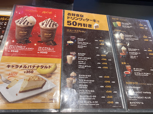 ゴディバ チョコレートエスプレッソフラッペ と McDonald's メニュー 注文の場合は、店舗入口左側 McDonald's注文カウンターへ。 McDonald's メニュー