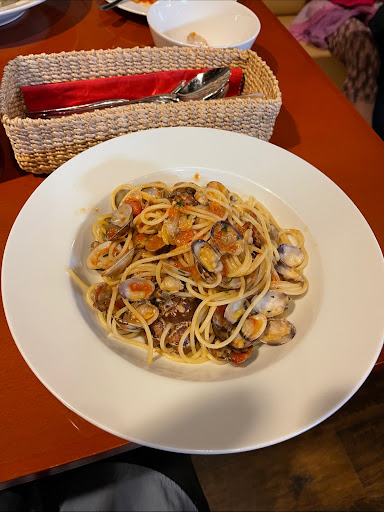 Family driven Italian restaurant serving pizza , pasta and a few sides. Located in the middle of many apple orchards. April and May you can look at bunch of white flowers in apple trees. Very nice scenery for this tiny restaurant. You need to adapt their serving pace as there are only chef and server to handle all tasks but food is descent and somewhat surprising with its excellent quality. I was disappointed with noisy talks by a few ladies near by my table in upstairs but myself and friend were very much enjoyed lunch. Recommended place but no English...