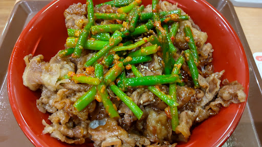 Read more記事、更新です。 スタミナつけようと、牛カルビ丼の、大盛りに、単品の、ニンニクの芽を、注文。ニンニクでも、良かったのですが、やはり、臭いが、気になるので…。 牛カルビ丼大盛りに、小鉢に、入っている、ニンニクの芽を、丼の、全体に、広げるように、入れる。肉の、茶系と、ニンニクの芽の、緑で、見た目にも、食欲を、そそる。 肉と、ニンニクの芽が、合い、ご飯が、進む、また、ニンニクの芽の、味付けが、ピリ辛の、味付けなので、この、ピリ辛が、更に、食欲を、そ...