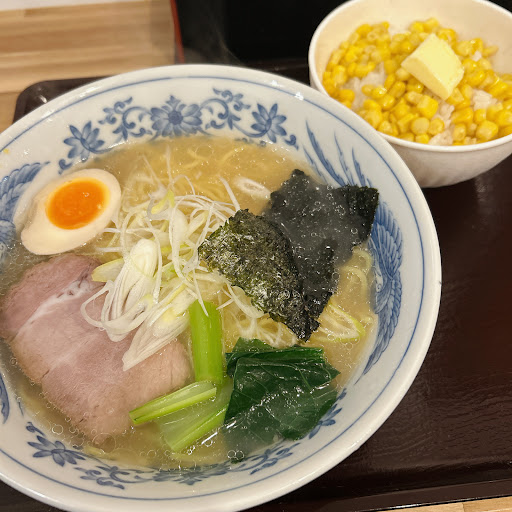 前回の12月末に大館訪問時にはホテル周辺のラーメン屋はないものと思っていたが、どうやらその直後くらいにオープンしたお店のようです。ならば行かねばと訪れました。 プレハブ小屋でのワンオペで、雰囲気はいい感じ。冬のほうが面白そうなお店ではあります。若めの兄ちゃんが明るく「いらっしゃいませー」 先払いなことも説明してくださいました。おそらく現金オンリー。 私は元来とりあえずお店のおすすめメニューを選びますが、口コミで触れられていた味の濃さが気になり、今回は鶏白湯柚子塩ラーメンをチョイス。ついでにこちらも口コミで気になったバターコーンライスも追加購入しました。合計1100円。 水とレンゲはセルフの二郎スタイル。とにかく嬉しいのはコップが大きい!コップが小さくて何回も汲みに行くのが面倒なお店もある中、これは嬉しい配慮です。 着丼し、スープをひとすすり。うん、たしかに普通のラーメンよりは濃いかも。二郎や、いわゆる二郎系、家系ラーメンを食べ慣れている私にとってはそこまでですが、たしかに普通にラーメン食べている層には濃いかも。しかし、ただ濃いだけでなく、背景の柚子の香りも味を支えて、バランスが良いのでつるつるすすれます。ネギと青菜も食感にアクセントを持たせてくれるので食べていて楽しいです。私は途中でバターコーンライスのバターをスープに投入。まろやかさも加わり、また違った味を楽しむことができます。 最後にスープの中にコーンライスを投入して、完飲いたしました。大変美味しくすすれました。 ただ、最後にコーンライスを勢いよく投入したものの、完飲までするつもりはなかったので、若干ミスったなという想いもあります。スープそこまで飲むつもりないなあという方は、ライスのほうに少しずつスープを入れることをおすすめします。 今度は味噌ラーメンと油そばも挑戦し...
