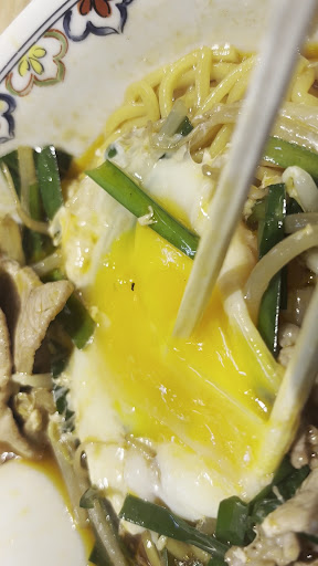 食べ進めていって 取っておいた、生卵を途中で割りほぐし 麺に絡めていただきます(^^)