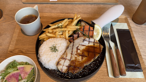 期待していたポークグリルが豚臭くて食べ進めるも、タイムやソースが豚の臭みを消しきれていなくて断念。 分厚いが、あんまり肉の質にはこだわってないらしい。 豚臭さを味わいたい方にはとってもオススメです!