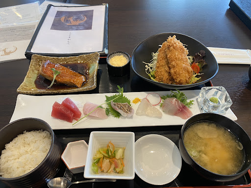 Read more漁港の食堂が臨時休業だったので、GoogleMapで探して行きました。 店主だか料理人だか分からないけれど年配の男性店員の接客?態度に驚いた。料理の配膳が、途中で気付いたのだがトレーごと置いていくのではなく一つ一つ器をテーブルに置いていくスタイルでした。男性店員は、最初の器を置いた後、無言で私達の顔を代わる代わる睨んできました。私達は最初その意味がわからず(感じの悪い店員だな〜)と目を合わせたのだけど(あ、器を置きやすいように退けろということか)と気付いた。店員の顔色を覗わなければならない食堂…「コロナだから口を開かないようにしてるんじゃないかな、そう思わないと気分悪くて仕方ないね。あまり考えないようにしよう」と、カウンターで常連客と談笑してる男性店員を見ながらサッサと食事を済ませて店を出ました。 肝心の料理は刺身盛合せ。刺身は水っぽくて量も少ないし、味噌汁は煮詰まったような塩っぱさ。水分量間違えたのかと思うくらい柔らかい白飯だけは量が多く、メインの刺身の少なさをカバーしてるつもりなのかな?と思った。お腹を満たしてくれた食材には感謝するけれど、多様性とはいえ、不快感も割高感も印象に残る店...