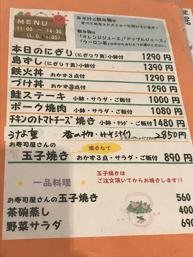 Read more2度目の訪問 最初の訪問は夜だったので、ランチを食べてみたくて再度の入店です! で、評判の良さそうな「お寿司屋さんの玉子焼き」を注文。 連れはチキンのトマトチーズ焼き 玉子焼きは噂通り、大きい!少し甘めかな?子供は喜びそうな感じな味付け。別のおかず3点は煮こごり?ひじき煮、かぼちゃの大学芋風かな? 味噌汁は豆腐とワカメでシンプル。 ご飯は器も大きいけど量もそれなりに多く、目分量で約250gはあると思う。 トマトチーズ焼きは胸肉使用でサッパリしてるけど、チーズも入ってるので割合ボリューミー。またサラダが超大盛りなんで、野菜好きの方にはバッチリです。 これにドリンク(オレンジ、アップル、烏龍茶から選択)で、普通の方なら...