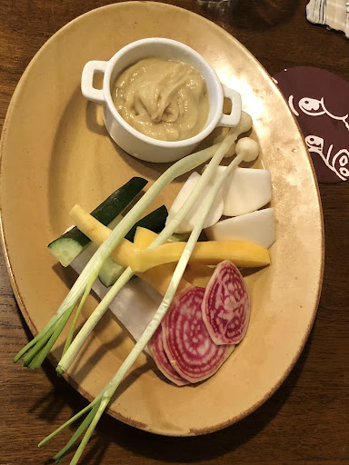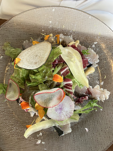 〜本日の料理内容〜 ❶前菜 ・朝獲れのハナダイ・ムツのカルパッチョ ・蟹味噌のバーニャカウダ ❷自家製パン3種類(手持ちブサくて食べるとメインが入らない) ❸荒ごしの栗の冷製スープ ❹新さんまと芋豚のテリーヌ ❺ハナダイのソテー・レンズ豆添え ❻子羊の鞍下肉のステーキ ❼付け合わせ : ムサカ(茄子とひき肉のグラタン) ❽デザート1 タピオカオレ (イチゴソースとキャラメルソースと2種類) ❾デザート2 ...