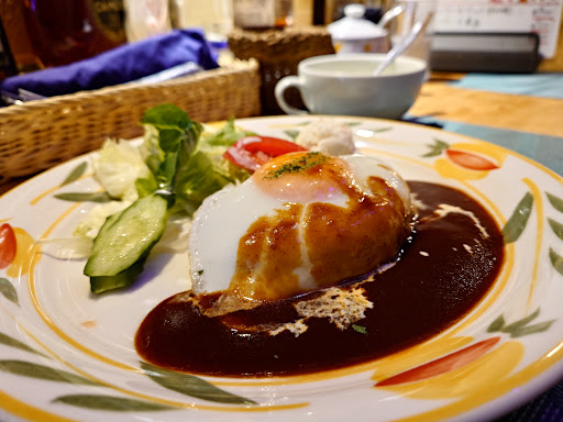 ◎Hamburger Steak The rich demi-glace sauce and firm, satisfying meat...