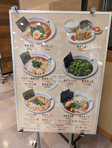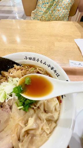 Read more小田原ダイナシティにある 小田原手もみ中華そば~天~。(202510F) ダイナシティ4F のフードコートに小田原系ラーメンがあるとの事で行ってみた。 ちようど昼時で多くの人で賑わっている。 二人掛けの席が繋げたような構成なので、狭さを我慢すれば、比較的多く見つけられそう。 うまく席が確保出来たので早速オーダー。 提供まで10分。 〔チャーシューワンタン麺と餃子セット〕 まずはスープを一口。 あれ、この味は知ってる。どこのラーメンだったかな。鶏油の香ばしい香りが立っていて美味い。 でも小田原系つて鶏油よりも醤油の方が強かったような? ワンタンは肉の入って無いとオーダー時に言われた。 知ってる小田原系は肉も入ってるけど。。。まぁこういう系もあるのだろう。 麺は平麺の乱切り、どことなく透明感のある麺で歯応えがいい。 量的には小田原系にしては少ないかな。 メンマもチャーシューも卒なくうまい。 餃子は肉の割合が高く大き目で食いごたえがある。 セットには3個ついているが、個人的には5個か6個は欲しいところ。 腹具合としてはチャーシュー丼まで付けたいが二千円を超えてしまう。 もうフードコートで気軽に食える値段じゃないね。...