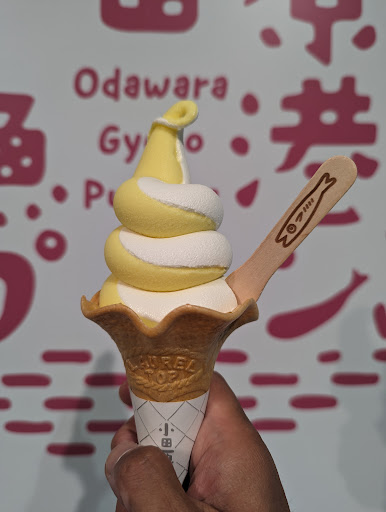 盛り盛りのソフトに上下の最中!小田原の文字もくっきりでまさに小田原提灯そのままのソフトクリームはビジュから圧巻です🤩 濃厚なミルクを感じながら甘すぎず滑らかなソフトは暑い日にも海鮮丼の後にも最高でめちゃおいしい😍※小田原の文字部分も食べられます! シェアしても良いくらいの盛り盛りなソフトクリームが550円も安すぎだし文句は1mmもありません🥹