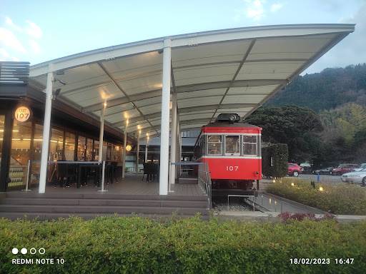 Read more2022年12月初訪。関東でかまぼこといえば鈴廣。 小田原から箱根湯本に向かう道沿いにあり、車でいつも素通りしていたが、今回は公共交通機関での旅。ホテルチェックインまで時間あり、車じゃないから飲める!ということで、こちらに寄ることに。箱根登山鉄道風祭駅からの徒歩5分程度。えれんなごっそというバイキングレストランの隣にカフェ107はある。往年の箱根登山鉄道107系が店舗前に鎮座し中でイートインできる。 メニユーは箱根ビール、ちょっとした軽食が食せる。 箱根ビールは3種類。箱根ピルス、小田原エール、風祭スタウト。350(580円)と500からチョイスできます。ソフトドリンク、スイーツもあるでティータイムもあり。 軽食はおつまみ系とかまぼこのピンチョス。日替わりで3種類のピンチョスがラインナップ。 ちょい呑みにちょう...