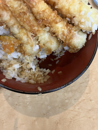 大ぶりのエビが7本乗った海老天丼、他にも茄子やピーマン かぼちゃの天ぷらなどが載っていました プリプリの大きいエビが7本も乗った。海老天丼がこの価格で食べれるなんて、とってもリーズナブルでうれしいですね エビはプリプリで衣はサクサク、かぼちゃもちゃんと火が通っているし、茄子もトロトロでとってもおいしいです。天丼のタレもかなり甘めで、私好みのタレでした。