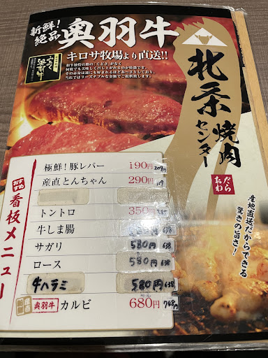 またカセットコンロの火力は弱く、焼き上がりに時間がかかるので、そのおかげで提供が間延びしても耐えられました しかし、食べるのが早い人だと白米だけの手持ち無沙Timeになるでしょう メニューのホルモンには珍しい部位が多く、これは良かったですがソレならばより本格的に部位と値段を提供している所でいいと思います お肉の味は美味しかったですが、値段の割に...?という感じです