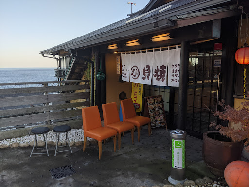 Read more美味しい海鮮を食べにきました。 海沿いに建つ、食券を購入して自分で海鮮を焼いて食べる形式のお店です。メニューには様々な海鮮とその他丼物や定食もあります。 お昼時で、数組のお客様が順番を待っていました。 お店の真横に展望台やテーブルとベンチがあるので、そこで海を眺めながら順番を待ちました。 券売機でお勧めの海鮮丼、ハマグリ・牡蠣・サザエを注文します。この日はハマグリの水揚げがなく代わりとしてホンビノス貝になっていました。 案内されたテーブルには、網焼き台とトング・軍手・千枚通し・キッチンバサミのセット、調味料が置かれていました。 網焼きの貝類が運ばれてきて、お店のかたが焼き方・食べかたを丁寧に説明してくれました。 初めての人も美味しく食べられると思います。私達もおかげで美味しくいただけました。 海鮮丼は鯵・マグロ・海老・蛸・トビコ等が盛り付けられわかめのお味噌汁もついています。海鮮丼のご飯は酢飯ではなく普通の白米でした。 あくまでも私個人の感想ですが、海鮮丼・網焼きの味は普通ですが、お店の雰囲気は良かったです。 網焼きは家族で訪れ...