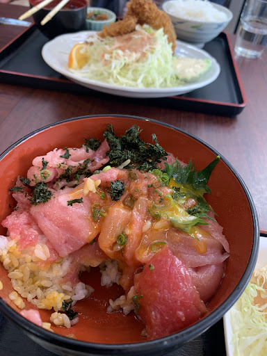 Read more早川の小田原漁港内にあるお店です。小田原漁港の駐車場は、漁協の駐車場がすぐに満杯になってしまいますが、こちらはお店専用の駐車場(5台分?)がお店の近くにあります。 たまたま、ペット同伴可能なお店を探していて見つけたお店です。外観はおしゃれなカフェ風で、ポークジンジャーボウルやサーモンアボガドボウル、カクテルなどハワイ風なメニューが正面にあり、正直、和食は何の期待もしていませんでした。 店内に入ると、室内とテラス席があり、ペット同伴はテラス席です。テラス席といっても庇もあり、多少の雨でも大丈夫です。 店内にも一部ペット可の席がありますが、カートに乗せて入ることが条件です。 メニューを見たところお刺身やフライの定食もあり、ここまできたらやはり、お魚を頂くことにしました。注文はセルフで、自動販売機で食券を買い、カウンターに出して、呼ばれたら料理を受け取りに行きます。 良い意味で裏切られました。とっても美味しい!お刺身は厚切りで、弾力があり、全体的に満足です。アジフライは、同じ漁港内に非常に有名なお店があるのですが、そことはまた別の食感で、外はカリカリ、中はふわふわ、決して中の火の通りが悪いのではなく、とっても美味しかったです。 漁港内のお店は何件か行きましたが、今のところ3本の指に入るといっても過言ではありません。 皆さんもよい意味で...