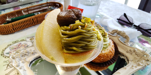 Read moreピスタチオが大好きで、たまたま観ていたTVで出ており、その中でも”ピスタチオ・モンブランパフェ”?(950円税込み。正式名称は忘れました)というのが美味しそうだったので来てみましました。そのパフェを店内で食べたいと伝えると、飲み物オーダーが必要とのこと。飲み物なしの場合は持ち帰りとなるが、店外のテーブルでの飲食は可能とのこと。暑い盛りでしたが外で食べました。ここでテンション↓ まず、このパフェは作り置きですでにショーケースに並んでいました。また、その容器は透明な使い捨てのプラスチック。どうみても貧弱、安っぽさ全開。ここでもテンション↓↓。味の方は、上にかかっている緑色のクリーム、甘さが強い。ピスタチオの味なんかほとんどしない。中の方のクリームは普通の生クリーム、下の方にはちょっとピンクかかったイチゴ系風味?のクリーム。スポンジ系やクラッカー系も入っていましたがどれもイマイチ。結局、ピスタチオらしさを感じたのはトップのピスタチオのかけらがかかっていたスプーン一口のみ。さらにテンション爆↓↓↓。 暑いところ、最寄駅から歩いて来てがっかりして帰ることになりました。駅まで戻る道すがら、コンビニでアイスを買ってしまいました。 シュークリームとかケーキとか美味しいのかもしれませんので、...