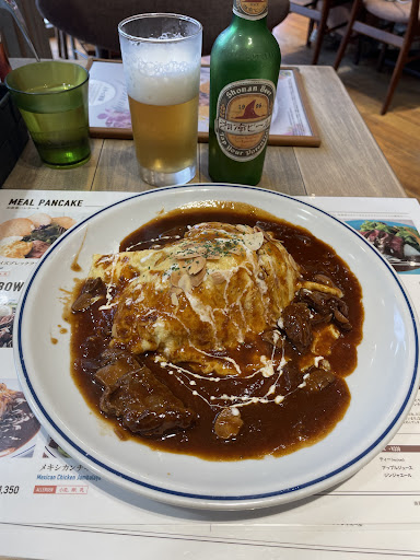 I had the beef stew omelette rice… which was regrettable, but the pancakes which is probably why you want to go were fluffy and great.